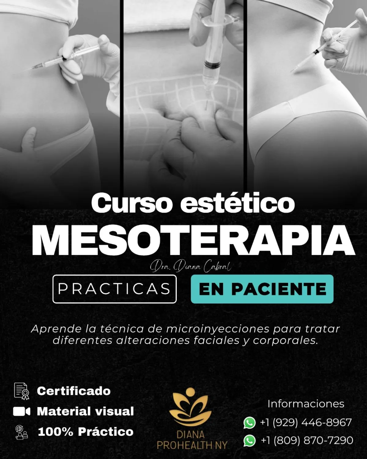 Soporte posterior con la Dra. Diana Cabral para consultas clínicas.